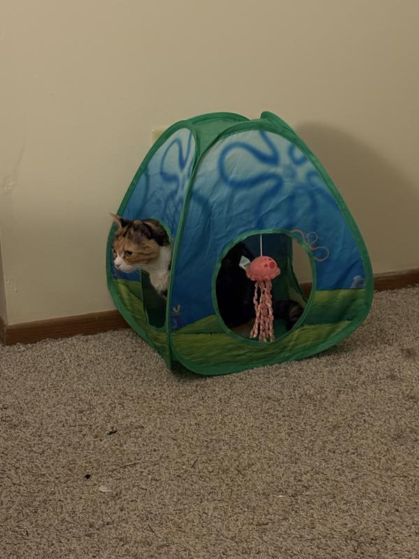 - This tunnel tent toy is a must-have for SpongeBob enthusiasts and a perfect addition to any kitty’s toy collection.