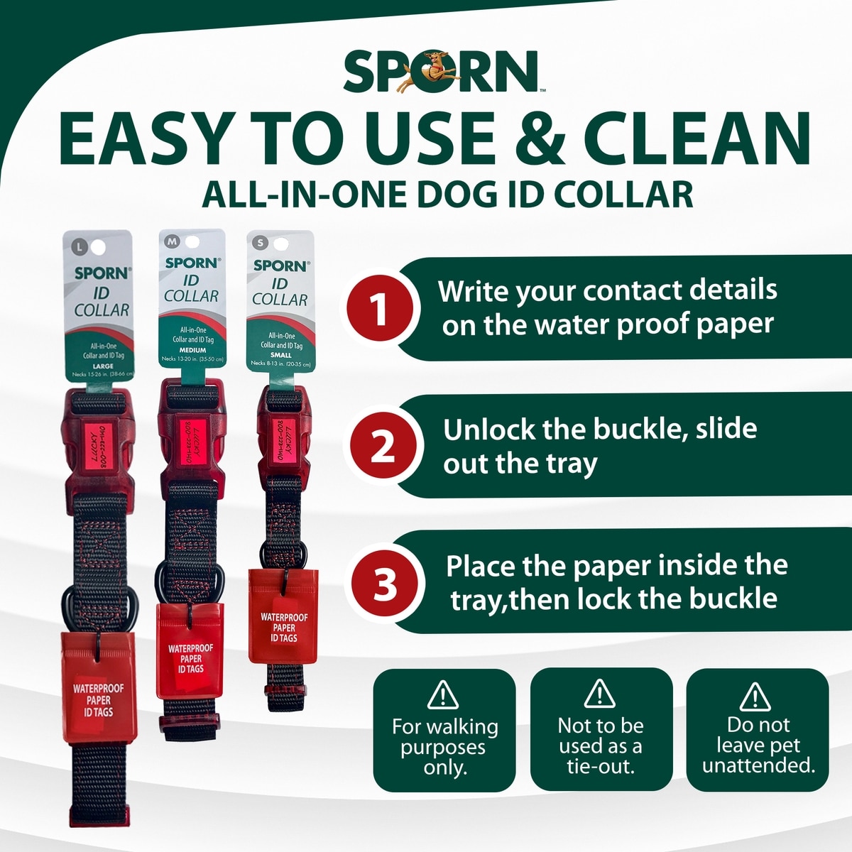 • The waterproof compartment is integrated into the collar buckle for easy access to your best friend’s ID information.