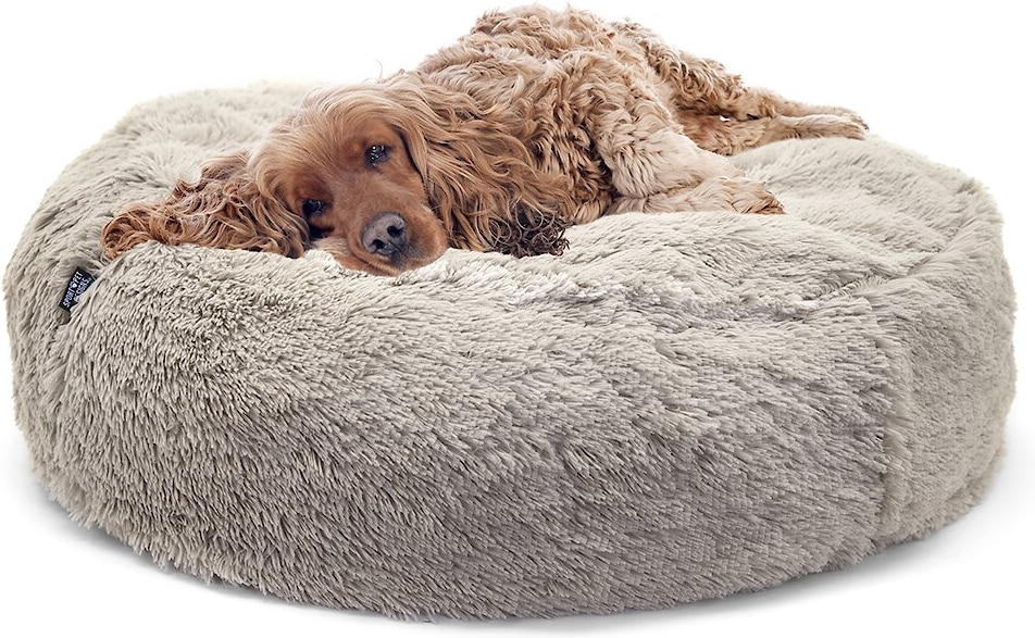 This dog bed is good for my two small/medium dogs to lay together on. The cover is really fluffy and a great beige color. The actual bed is a little lumpy and not as comfy as I would have pictured. But my dogs still like it!