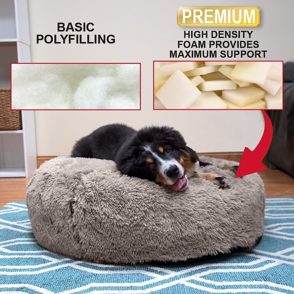 This bed is not at all something one would want to sleep on even if they are a dog. It arrives in a vacuum seal compressed bag and after 15 minutes if fairly vigorous pulling I was finally able to get it re-inflated (for lack of better word). The foam inside is fairly stiff and very lumpy. I can not imagine finding that at all comfortable even for a dog. It seems like they were using literal garbage scraps from a styrofoam factory to fill the thing with. When I called to ask for a refund, even Chewy didn’t want it back. Do your dog a favor and don’t buy this.