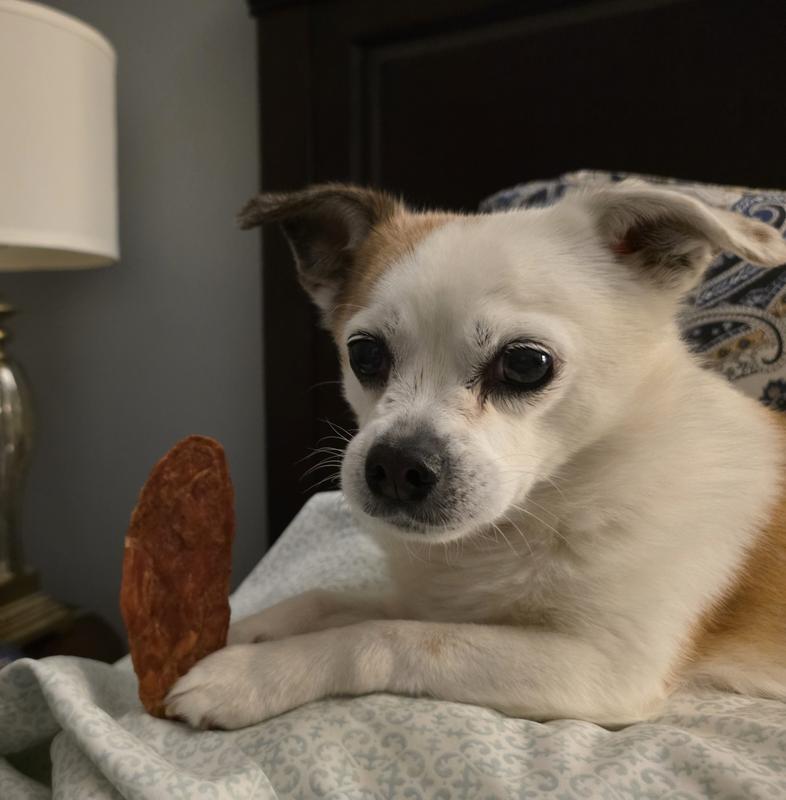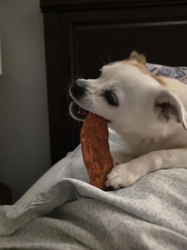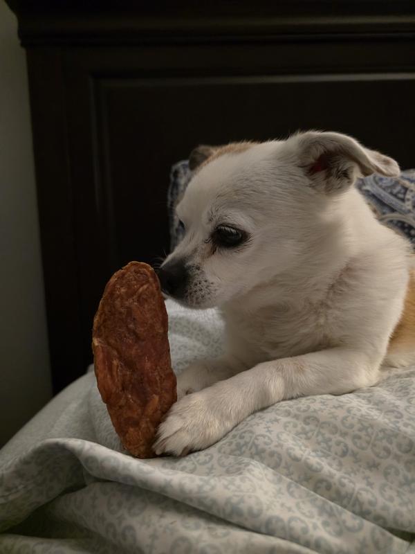 This jerky is pliable to the touch but tough enough to give your little one a bit of chew while eating the treat.