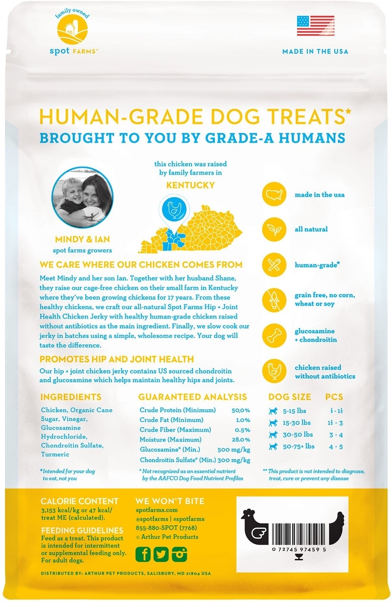 Spot Farms Chicken Jerky Hip & Joint Formula Human-Grade Jerky Dog Treats, 12-oz bag