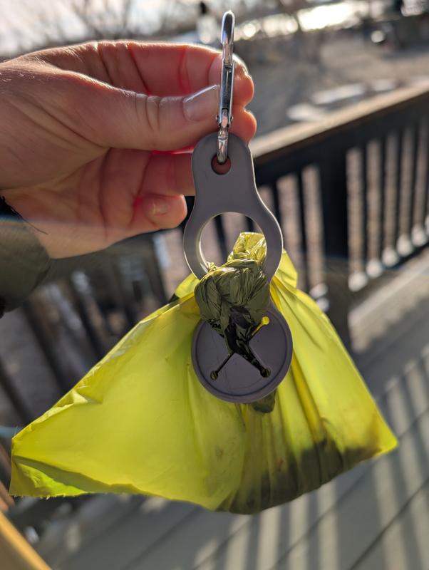 This is the perfect way to keep a messy poo bag out of your hands. The design hold the bag tightly through hikes in the woods and runs on the road