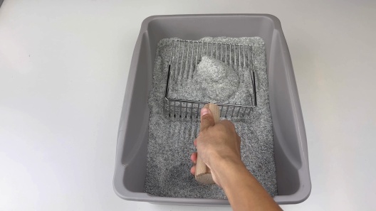 This litter box scoop will pick up any small piece that is not as small as the spacing between the litter scoop.