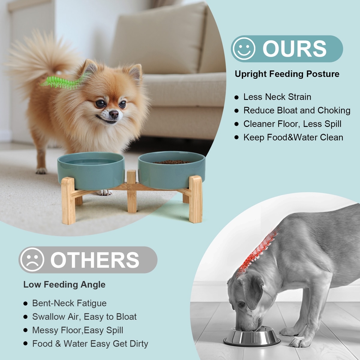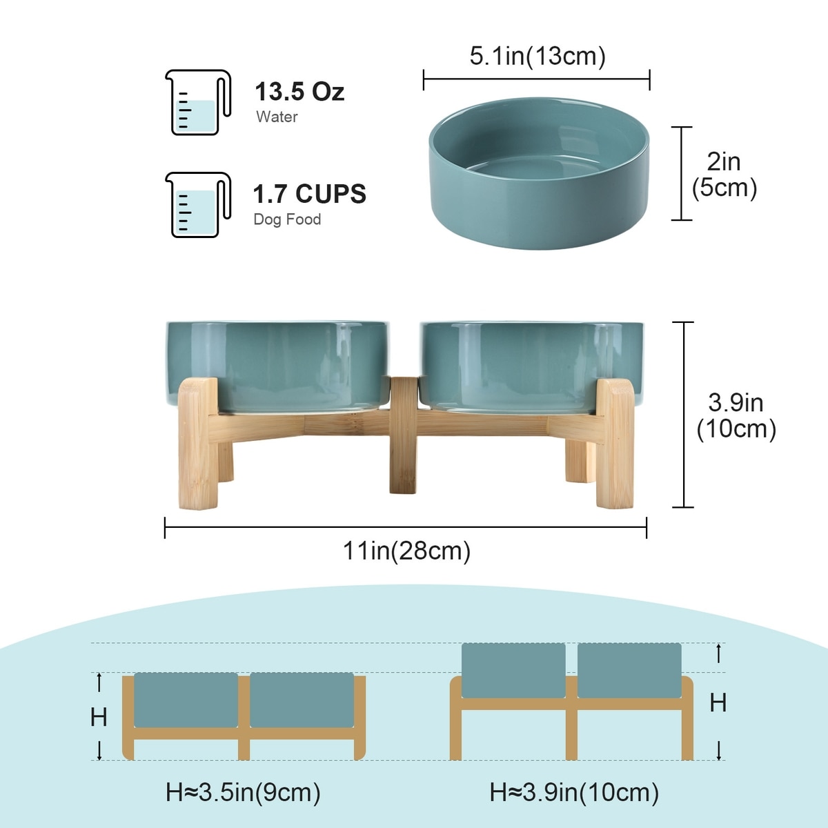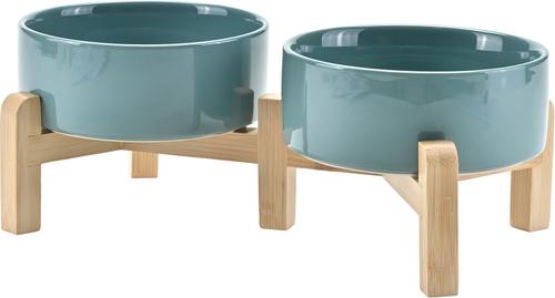 SpunkyJunky Ceramic & Bamboo Non-Slip Elevated Dog Bowls, 2 count, Dark Green, 1.7 cup