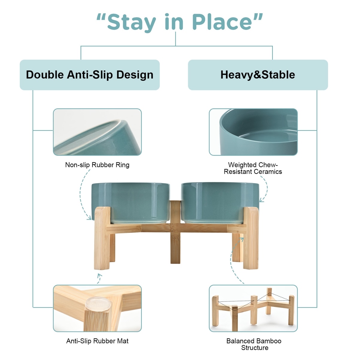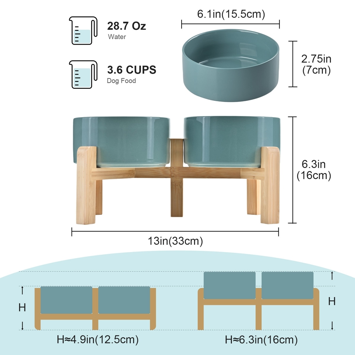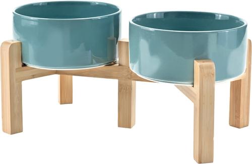 SpunkyJunky Ceramic & Bamboo Non-Slip Elevated Dog Bowls, 2 count, Dark Green, 3.6 cup