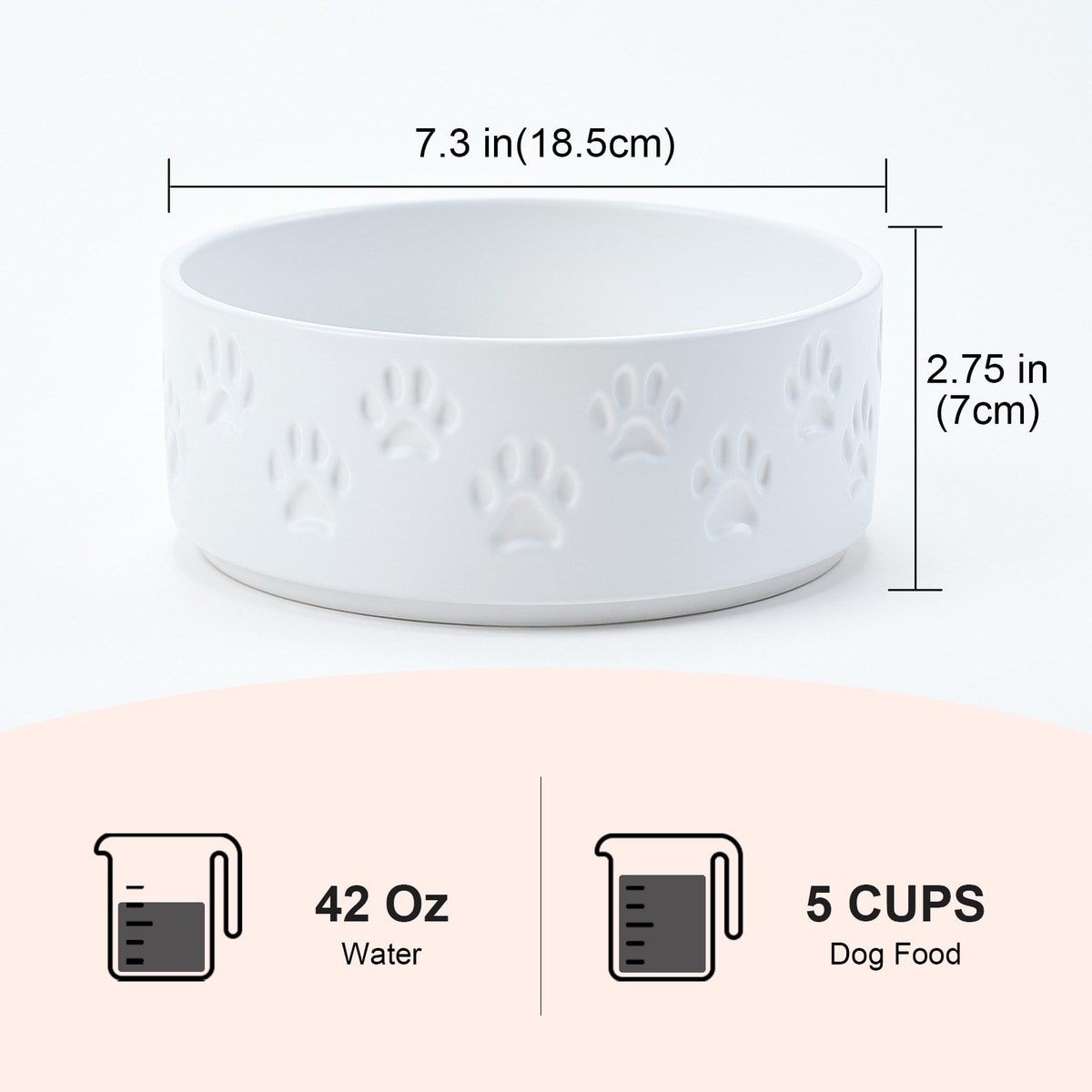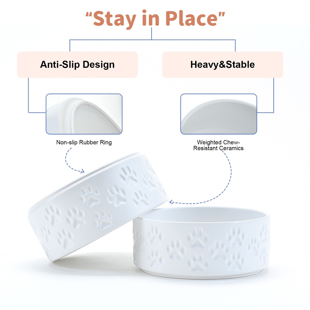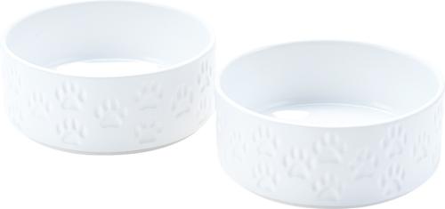 SpunkyJunky Ceramic Non-Slip Paw Print Dog Bowls, 2 count, White, 5.3 cup