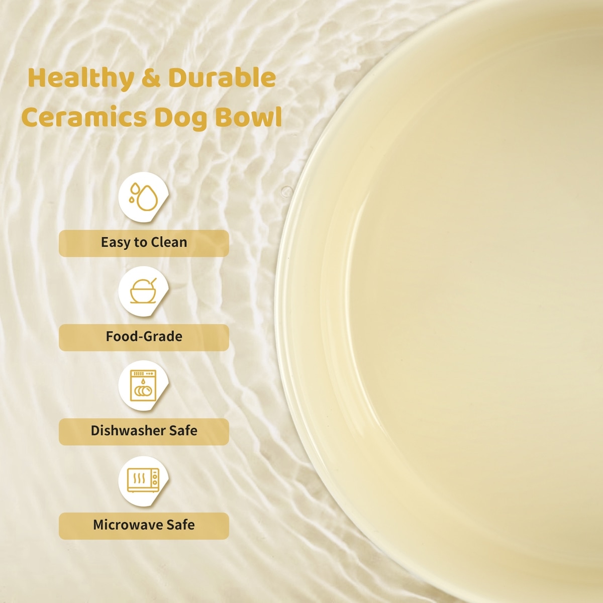 SpunkyJunky Ceramic & Wood Raised Dog Bowls, 2 count, Beige, 3.6 cup