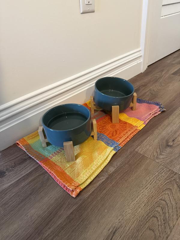 SpunkyJunky Slanted Ceramic & Wood Non-Slip Dog Bowl, 1 count, 3.6 cup, Beige