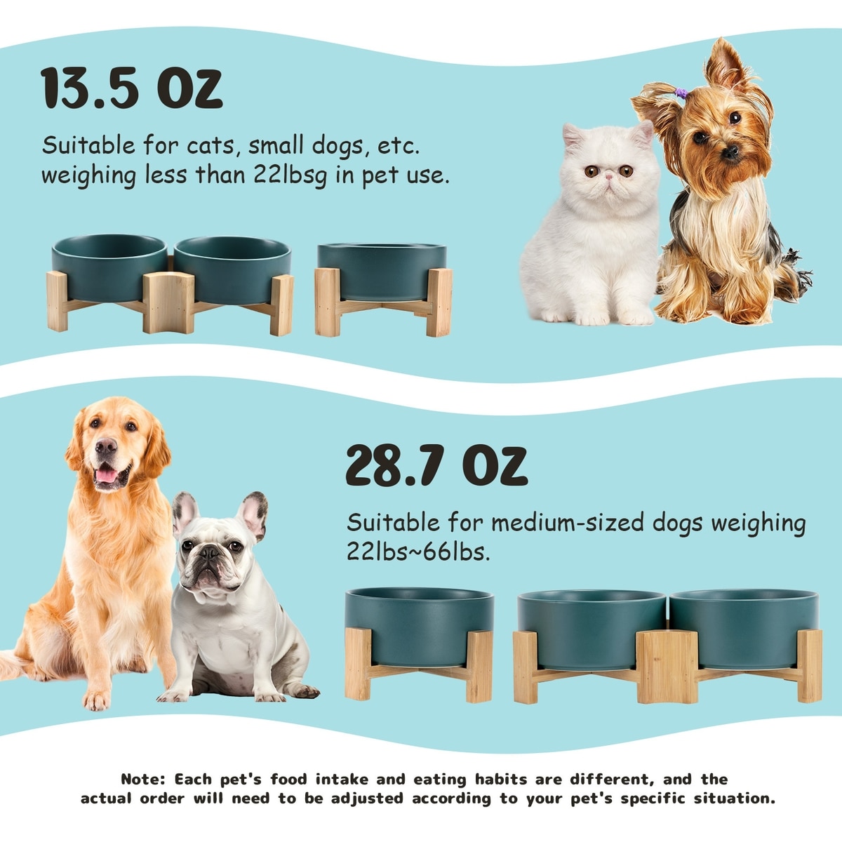 SpunkyJunky Slanted Ceramic & Wood Non-Slip Dog Bowl, 2 count, Green, 1.7 cup