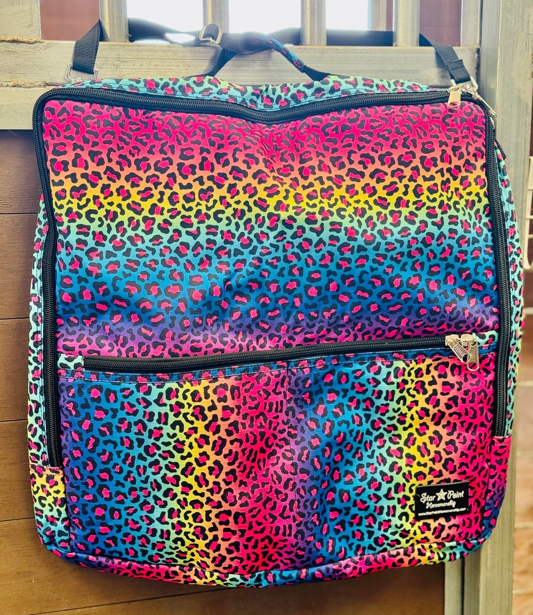 Star Point Horsemanship 600 Denier Ripstop Stall Front Tack Horse Storage Bag, Rainbow Cheetah