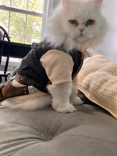 The quality of this costume surprised me! It fit my 100 pound Anatolian/Pyr! (a little tight but it's velcro so you don't have to fasten every one). The embroidery on the back is a nice touch and the pockets are functional! (Store treats for later?) Now just have to find him the keys to the Millennium Falcon!