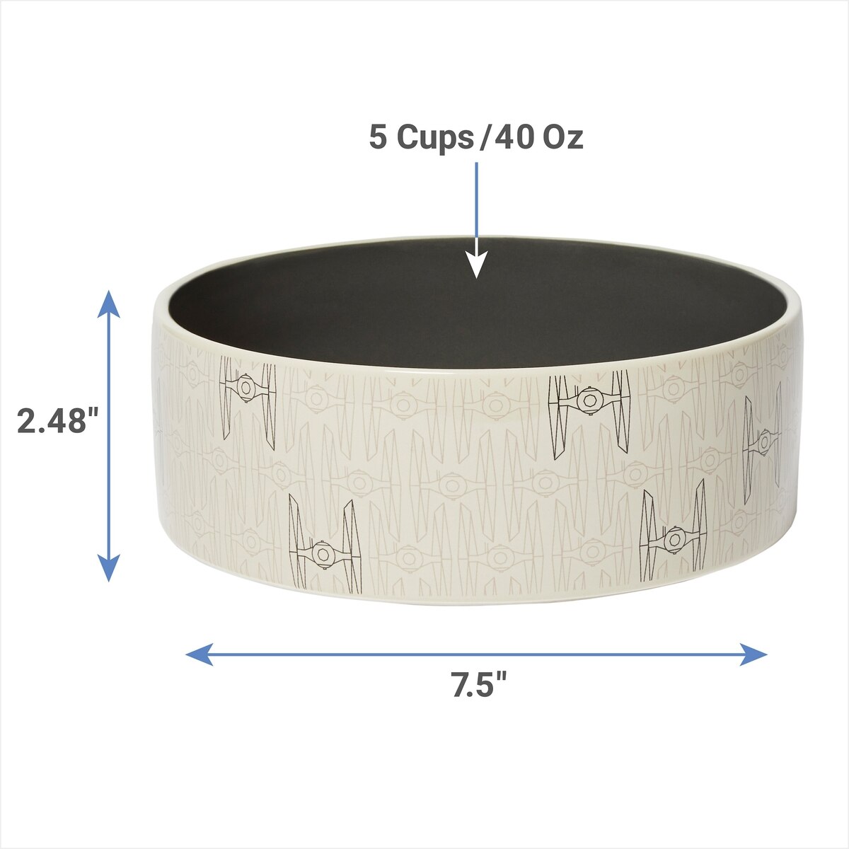 STAR WARS Tie Fighter No-Skid Ceramic Dog & Cat Bowl, Medium: 5 cup