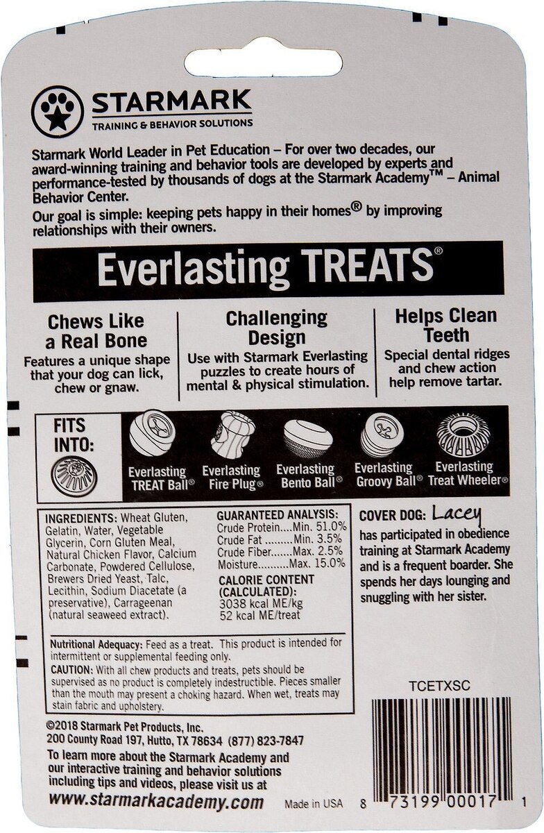 - Starmark Everlasting Chicken Flavored Dental Dog Treats, Small, 2 count$3.77 Chewy Price$4.49 List Price$3.58 Autoship PricePromo, New Customers Only: Spend $49+, Get $20 eGift Card +1 deal