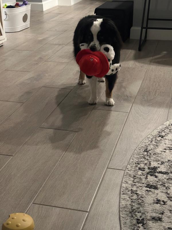 My mini aussie absolutely loves the Hero Fire Fighter Tough Squeaky Dog. From the moment I took it out of the box, he started zooming around the house and and tossing it like his new prized possession. He’s so attached that he won’t let anyone take it from him, and when he’s done playing, he actually hides it so he can come back to it later. That “guard‑it‑for‑later” behavior says a lot about how engaging this toy is. Durability is the standout. Although my dog is a true power chewer, he hasn’t tried to shred this toy or rip out the crinkle noise in the ears of the toy. After several play sessions, the toy still looks new. Overall, this seems to bring daily joy and the contruction feels sturdy and the seams hold up to tug and fetch. I would definitely recommend the Hero Fire Fighter Tough Squeaky Dog to anyone with an active, toy‑motivated pup.
