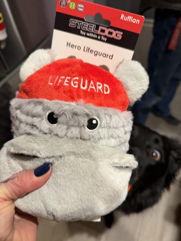 SteelDog USA Ruffian Hero Lifeguard Tough Squeaky Dog Plush Toy, Grey