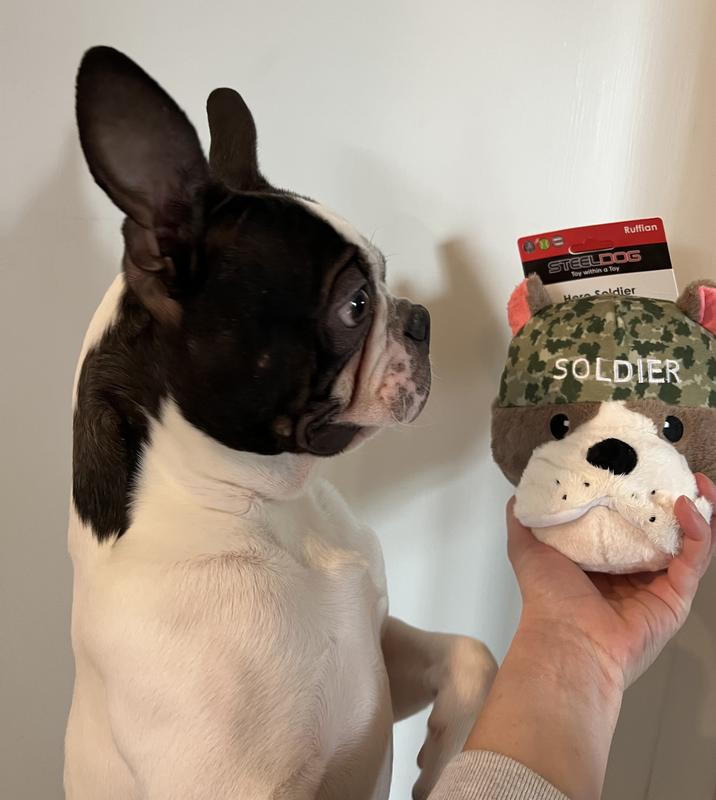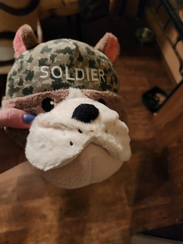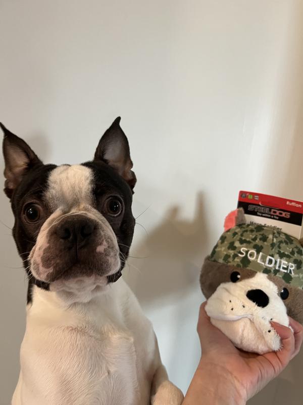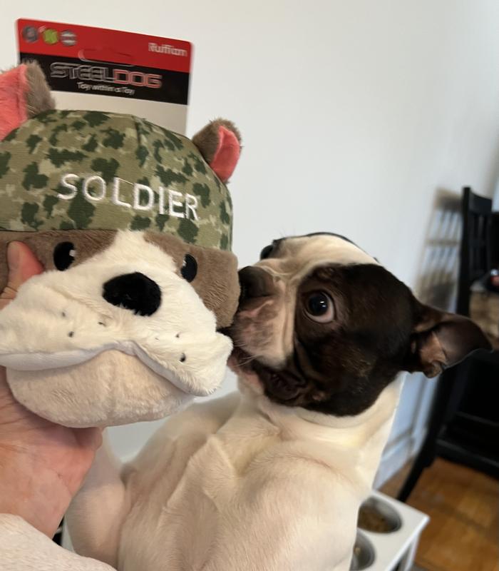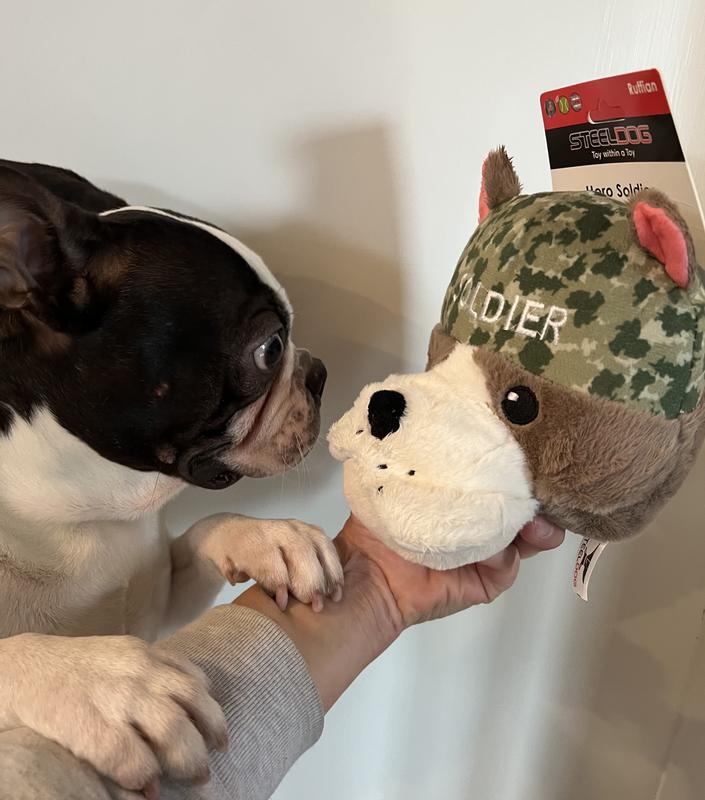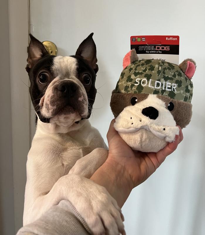 This is so stinkin cute! What a fun toy for my doggo. Can't wait to show my dad who was in the Army, he will love it! This is such a cute toy my girl loves the toys filled with stuffing!