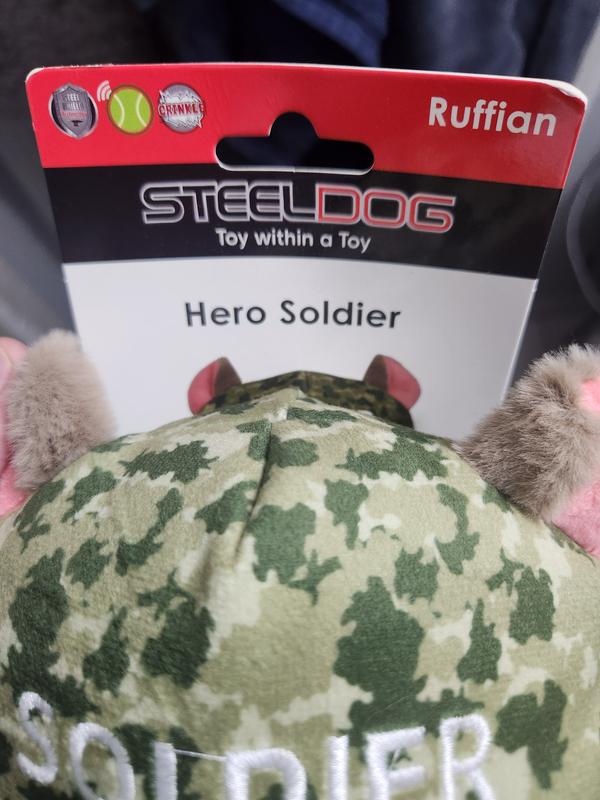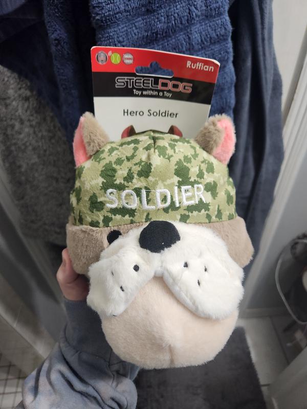 SteelDog USA Ruffian Hero Military Soldier Tough Squeaky Dog Plush Toy, Tan