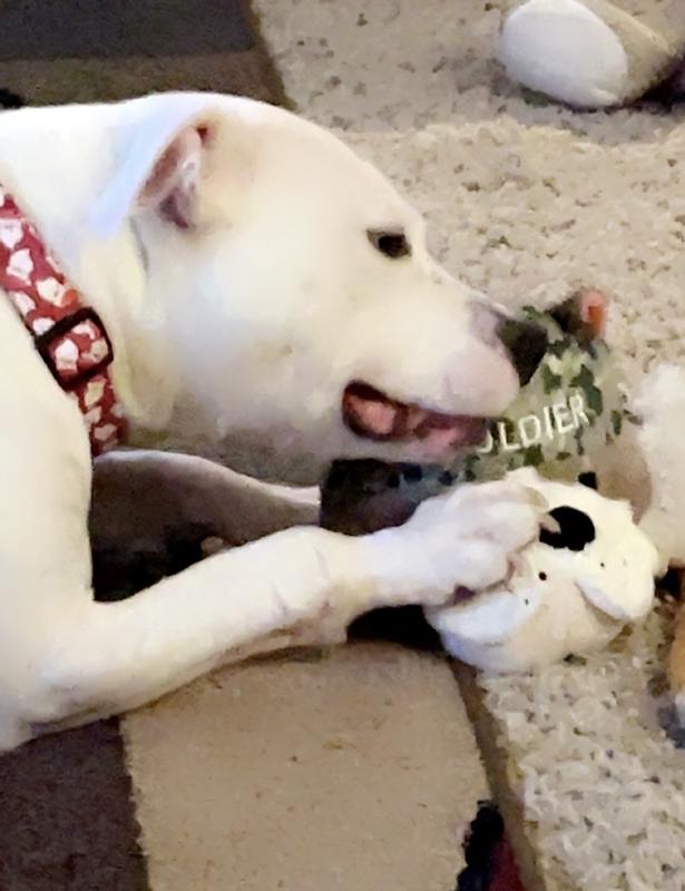 This is so stinkin cute! What a fun toy for my doggo. Can't wait to show my dad who was in the Army, he will love it! This is such a cute toy my girl loves the toys