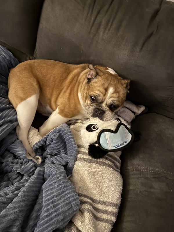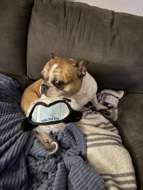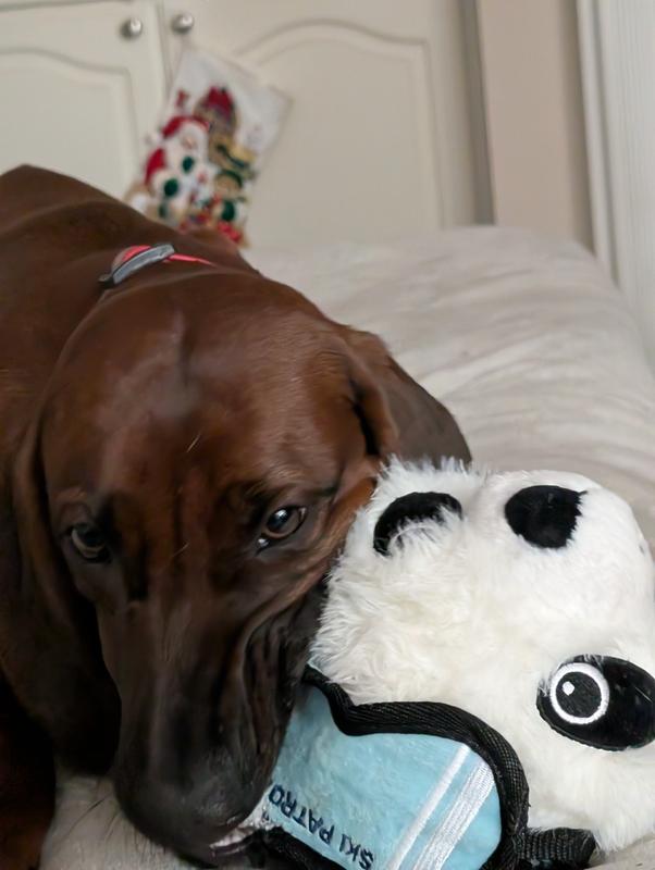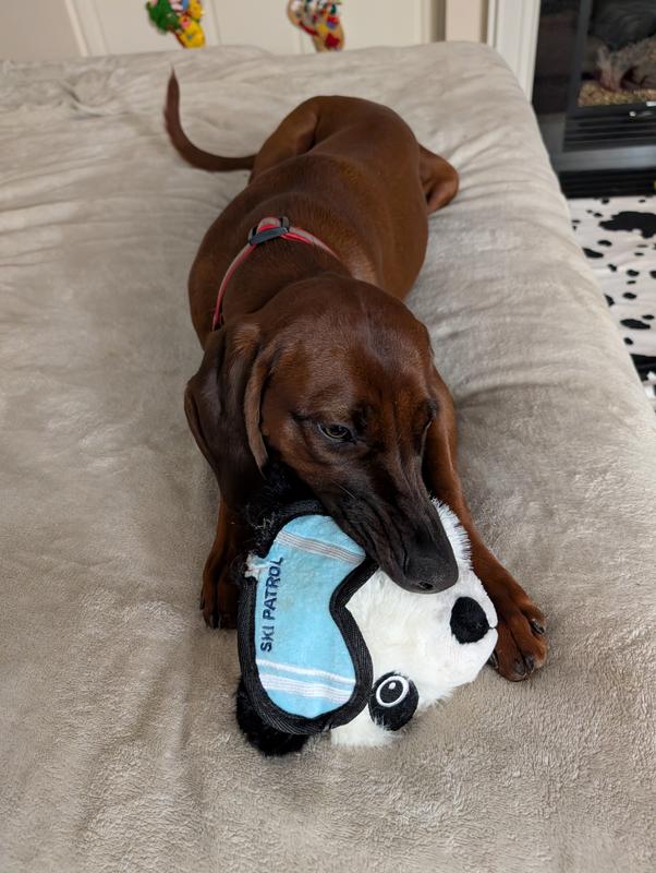 I love the Ruffian Hero Ski Patrol toy! It has a fun and adorable design, especially the little goggles and ski details. The material feels sturdy and well-made, perfect for playtime and tossing. It also has a good size that makes it easy for my dog to carry around. That said, my dog is a very strong chewer, and I expect he’ll eventually chew the goggles off. Overall, it’s a great toy for dogs who enjoy playful chewing and interactive play.