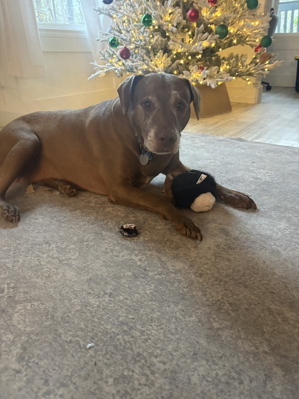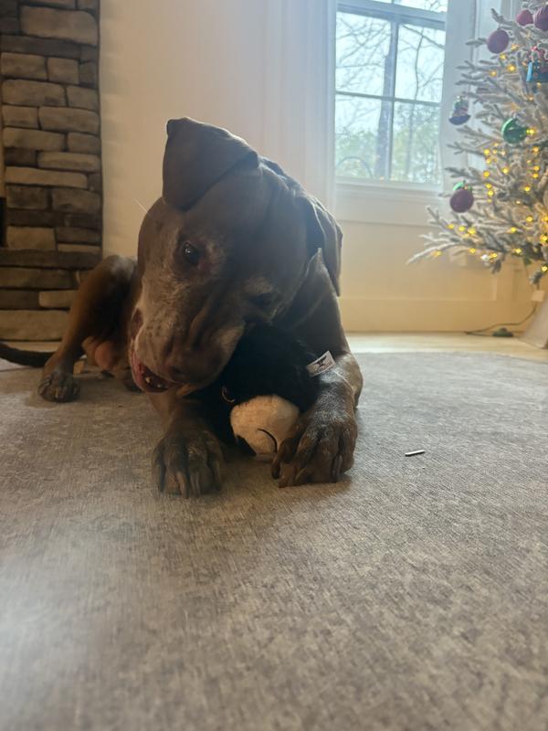 Wasn’t sure what to expect but the heeler absolutely loves this toy. So far, it has held up to him pitching it around the house in glee. He almost always guts toys quickly but he likes just carrying this one around. Perrin recommended!