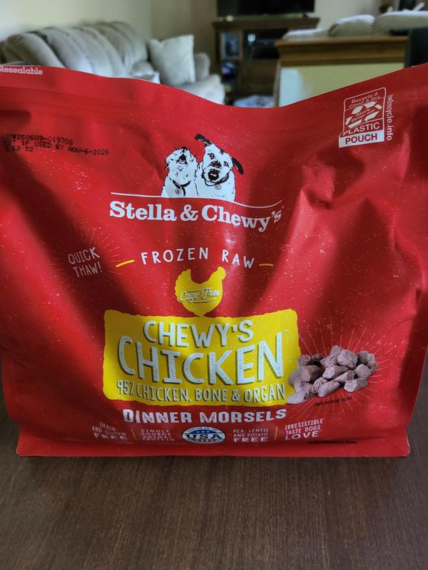 - Stella & Chewy's Chewy's Chicken Patties Frozen Raw Dog Food, 6-lb bag$45.99 Chewy Price$43.69 Autoship PricePromo, Buy Stella & Chewy's, get free Freeze-Dried Topper +2 deals