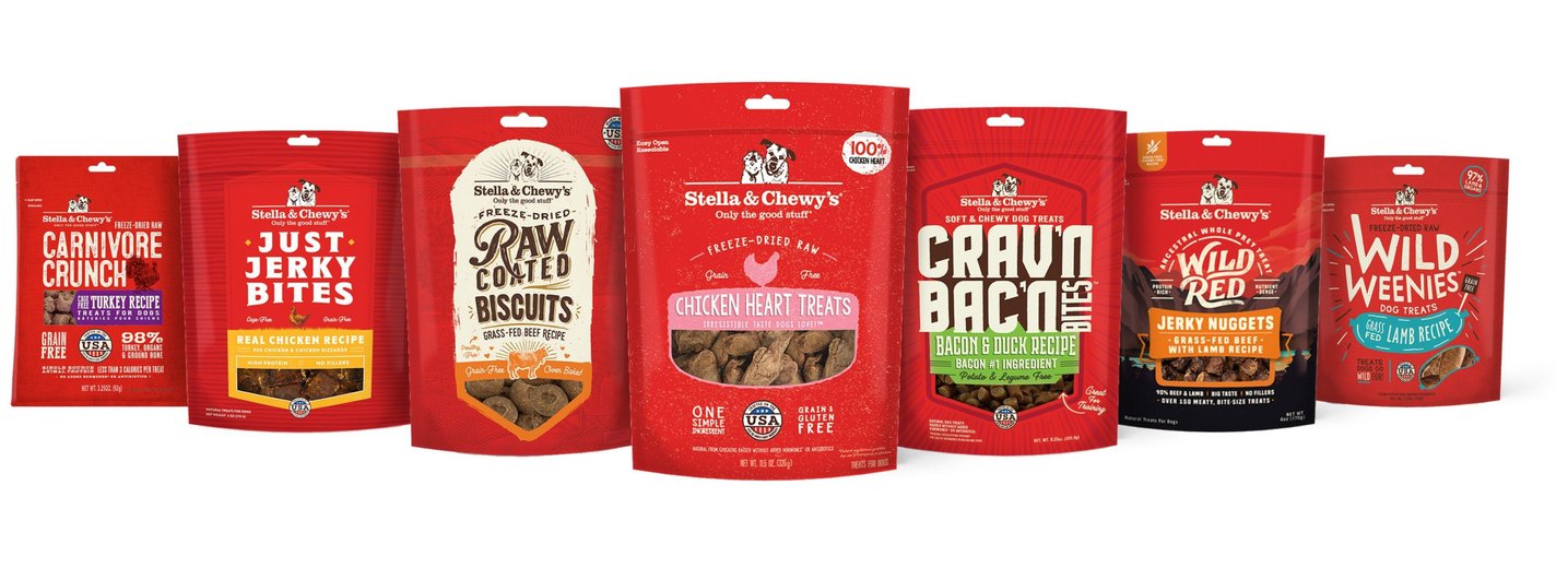 Stella & Chewy’s is constantly finding fun, new ways to reward your dog. A variety of different treat types makes it easy to add a delicious kick of protein to your dog’s day. Whether your pup prefers freeze-dried treats, baked biscuits, jerky or training treats, they have you covered. These treats are made with only the good stuff!