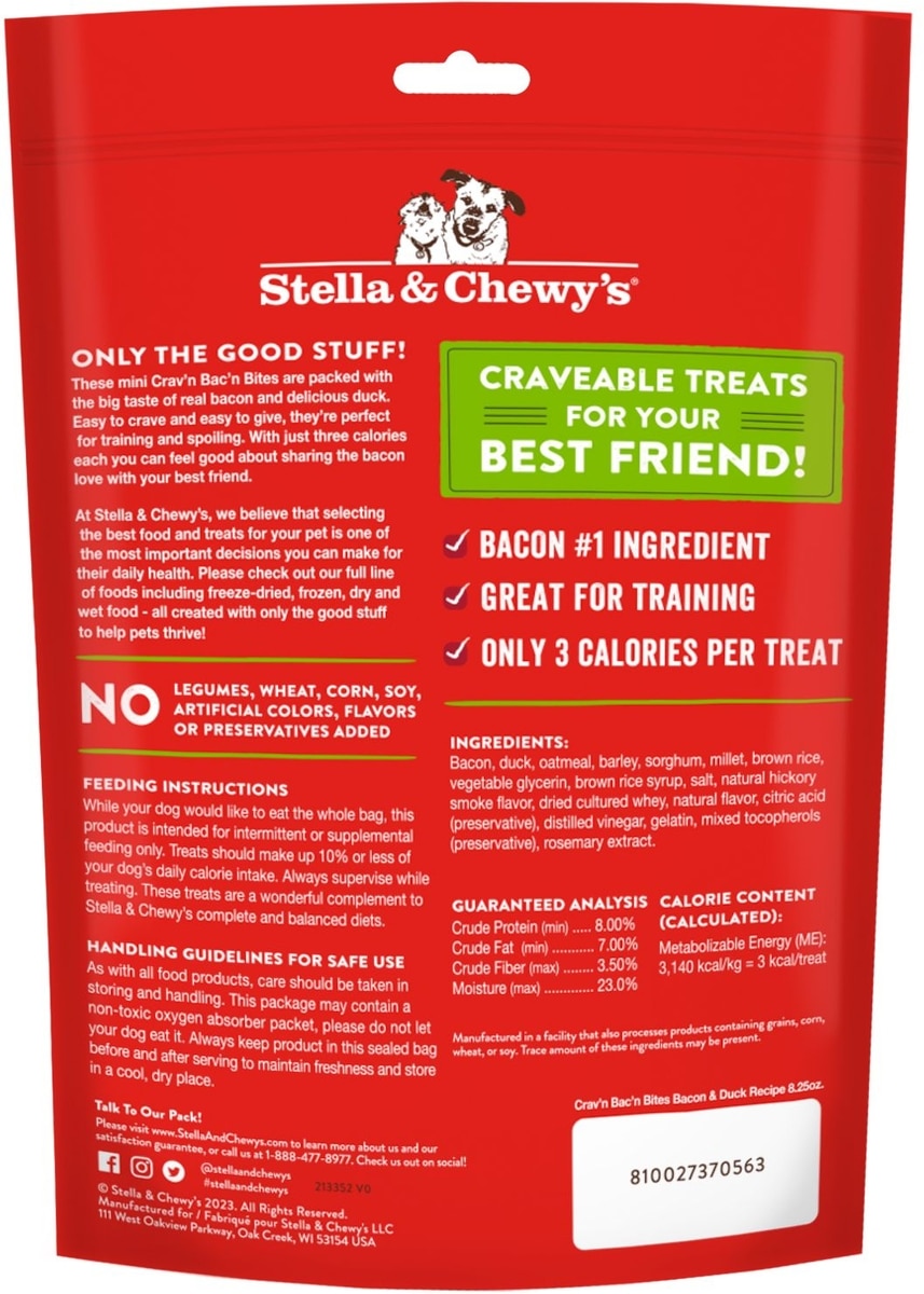 Stella & Chewy's Crav'n Bac'n Bites Bacon & Duck Recipe Dog Treats, 8.25-oz bag