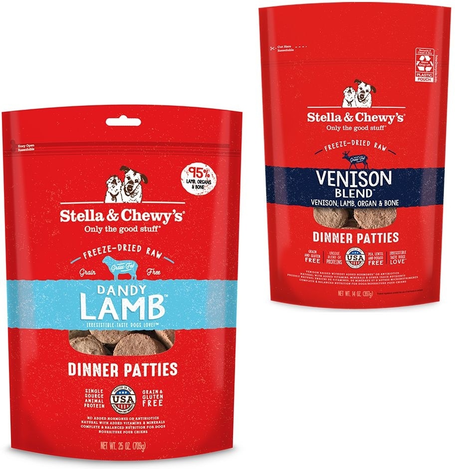 Stella & Chewy's Dandy Lamb Dinner Patties Freeze-Dried Raw Dog Food, 25-oz bag—Give your dog what he naturally craves with Stella & Chewy's Dandy Lamb Dinner Patties Freeze-Dried Raw Dog Food. Based on the philosophy that dogs thrive on the same diet they would eat in the wild, this all-natural recipe makes it easy to feed your best friend only the good stuff. Made from sustainably-sourced ingredients and raw, single-source protein, this recipe starts with 95% grass-fed lamb, organs and bone, plus 100% certified organic fruits and vegetables—offering the benefits of raw food nutrition with the convenience of freeze-dried preparation. And to ensure the highest quality, each batch is made with care in Stella & Chewy’s own U.S. kitchen.