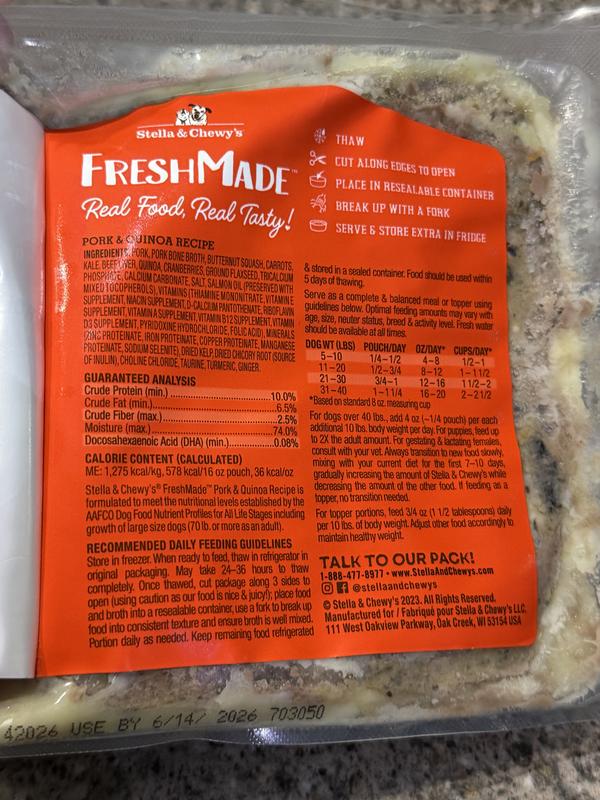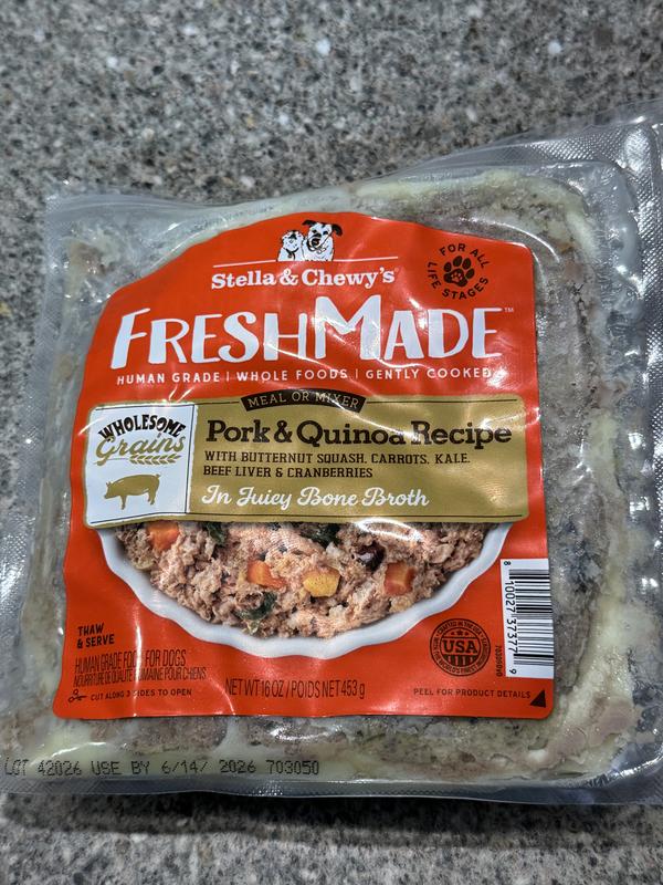 Stella & Chewy's FreshMade Frozen Fresh High Protein Pork & Quinoa Dog Food, 64-oz bundle