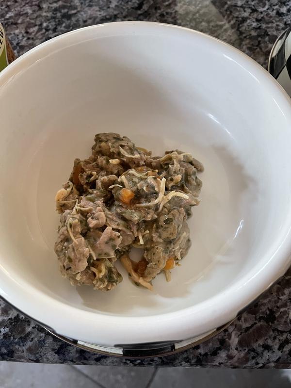 My street dog turned princess turns her nose up at certain foods and textures. She thankfully LOVES this. It looks like a hearty stew and has healthy, quality ingredients. We had a health scare recently where she wouldn’t eat anything and I’m so grateful we had cans of this over Christmas on hand as this was the only food she would consume and stores were closed. This is made with cage free duck and chicken liver so she gets all her protein needs. I care greatly what my babies eat and highly recommend this.