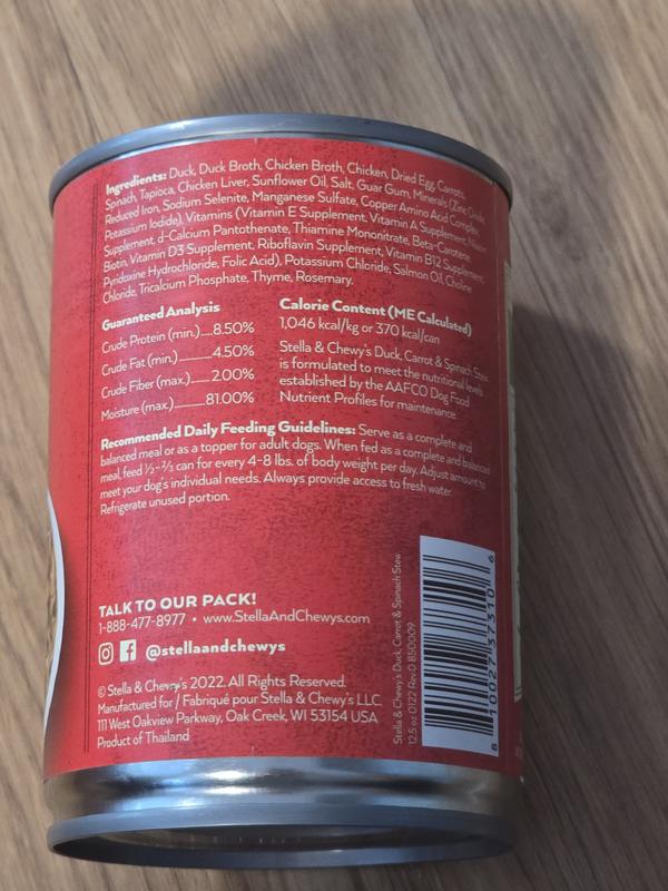 Stella & Chewy's Gourmet Stew Cage-Free Duck with Carrots & Spinach Grain-Free Wet Dog Food, 12.5-oz can, case of 12
