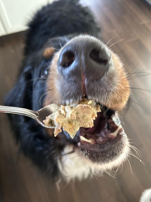 I have a 5 year old Pembroke Welsh Corgi and I don’t know what a 2.5 year old Bernese Mountain Dog and they both go crazy for this food. they love the flavor and I use this food as a topper on the cable as well as a snack/reward throughout the day. While both of my dogs love how this tastes, I am more concerned with ingredients and quality, and they are both amazing! This food smells great and looks appetizing. I love that I can see whole pieces of ingredients and that it is truly what it says in the ingredient list. It is a high-quality dog food, no matter if you feed it exclusively or if it is used as a topper on kibble.