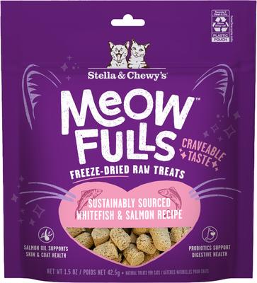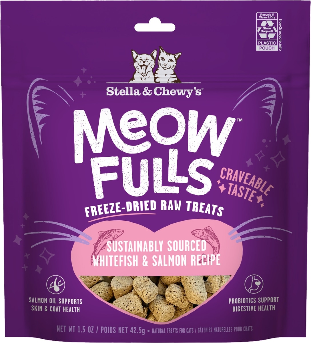 Stella & Chewy's Meowfulls Whitefish & Salmon Recipe Grain-Free Freeze-Dried Cat Treats, 1.5-oz bag