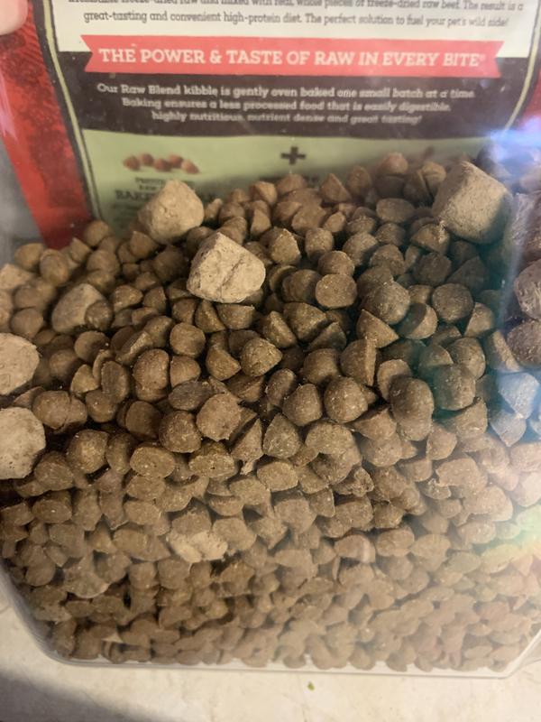 Baked Kibble + Freeze-Dried Raw Pieces Raw Blend Kibble goes one step further—pairing oven-baked, raw-coated kibble with freeze-dried raw meat pieces. A bold combination of crunch and chunks of raw, it satisfies instinctual cravings while providing complete and balanced nutrition.
