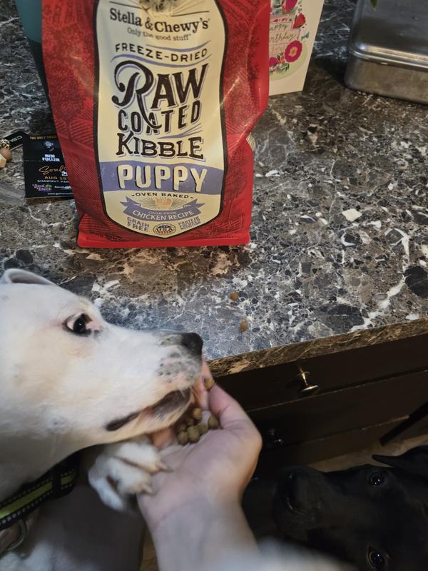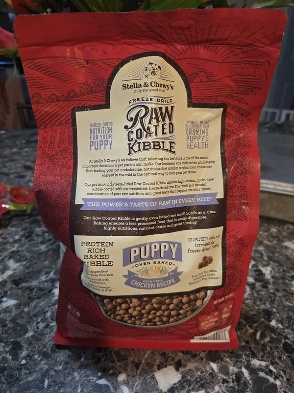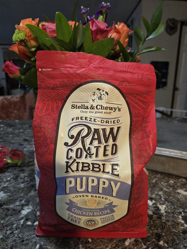- DealStella & Chewy's Raw Coated Wholesome Grains Cage-Free Chicken Recipe with Pumpkin & Quinoa Puppy Dry Dog Food, 3.5-lb bag$25.19 Chewy Price$23.93 Autoship PricePromo, Buy Stella & Chewy's, get free Freeze-Dried Topper +2 deals