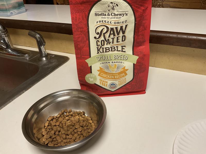 A great product, as usual from Stella & Chewy. The size was perfect for tiny chihuahua mouths. The ingredients were wholesome and the product looked great. Unfortunately, my two chihuahuas just weren't into it. They aren't particularly picky dogs but they picked the Stella & Chewy kibble out of their bowls and left it on their food mat. Regardless, I would not hesitate to recommend the food as Stella & Chewy make high quality products and my dogs & cat have really liked other products. If you are looking to try to change your dog's food or have a new dog, this is a very good product.