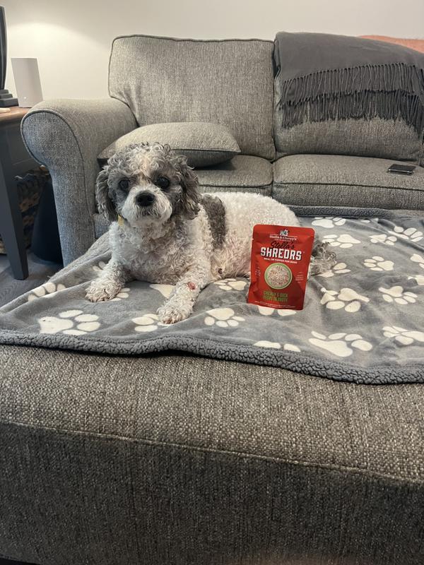My two standard poodles love the Stella & Chery's Shredrs Chicken and Duck on top of their dry kibble. It guarantees a clean bowl.
