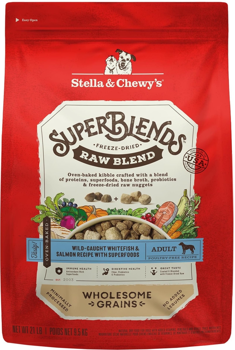 Stella & Chewy's SuperBlends Raw Blend Wholesome Grains Wild-Caught Whitefish & Salmon Recipe with Superfoods Dry Dog Food, 21-lb bag