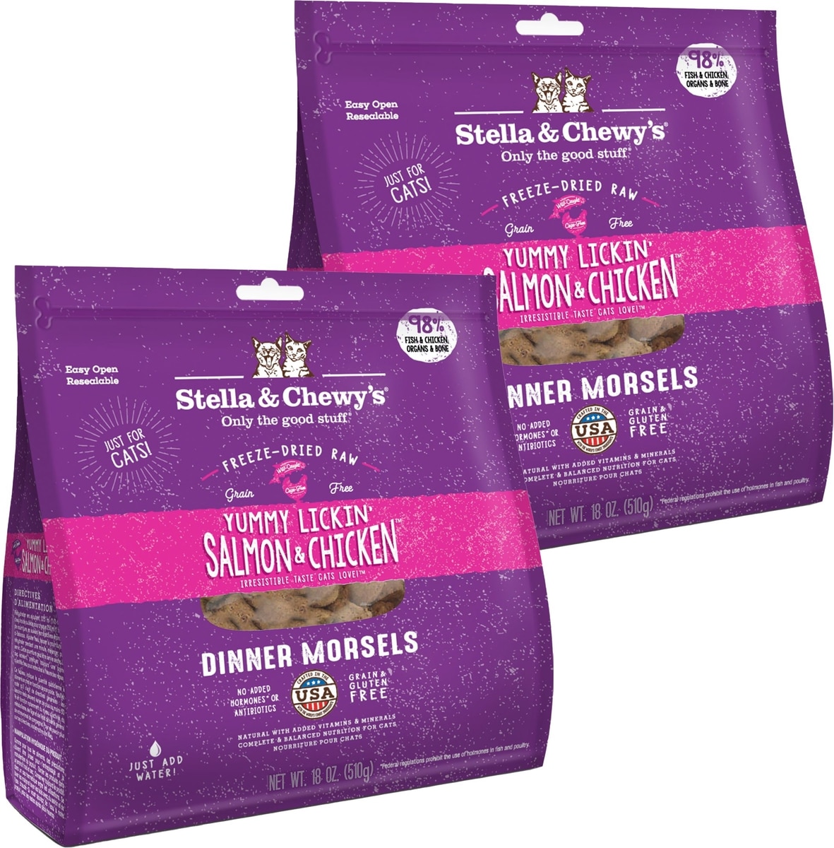 Stella & Chewy's Yummy Lickin' Salmon & Chicken Dinner Morsels Freeze-Dried Raw Cat Food, 18-oz bag, bundle of 2