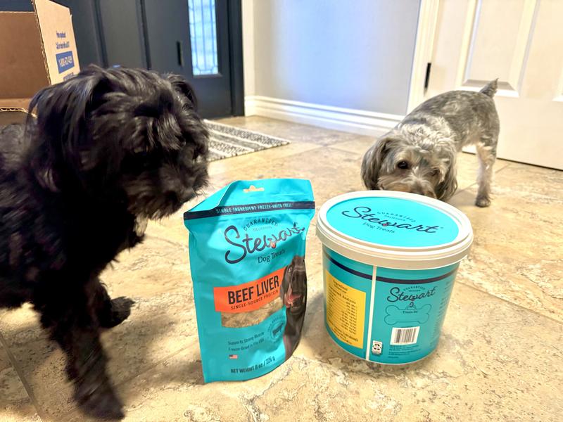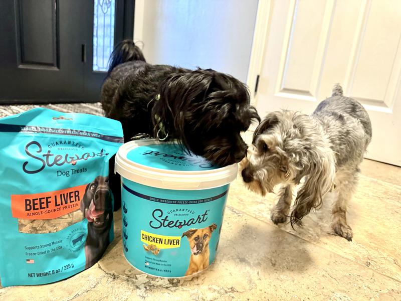 I ordered 2 varieties of Stewart Freeze-Dried Liver Treats for my dogs - Chicken Liver and Beef Liver. For my boys, these are THE best treats I can give them. They are single ingredient, pure chicken or pure beef liver with no additives or fillers. More importantly, they are freeze-dried. Freeze-drying removes all excess moisture, and that preserves the important natural nutrients found in liver, without added preservatives. And what do my dogs think? They absolutely love them! As soon as I reach for the tub or bag, tails wag, bodies quiver, ears perk, and they sit anxiously while licking their lips. These treats get their undivided attention. I would highly recommend Stewart Freeze-Dried Chicken or Beef Liver Treats to any pet parent wishing to give their pets nutritious, high quality treats.