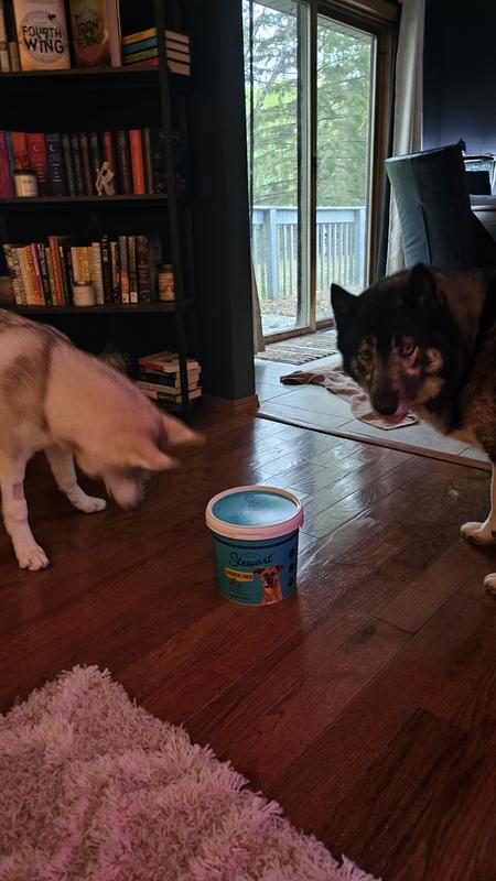 My pups loved this product ,They went crazy over it probably because it’s very smelly . It’s a very large container , much bigger than i expected. I’ll definitely