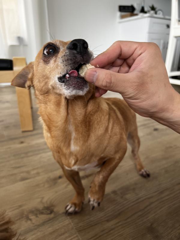 I have two senior dogs - the pickiest Shih Tzu in the world who only enjoys particular jerky treats and a Chihuahua mix who will eat anything under the sun. To my surprise, these were a huge hit with Shih Tzu, Emma! She was really curious and sniffing the bags/bin, she took bites instantly and wanted more 🥹