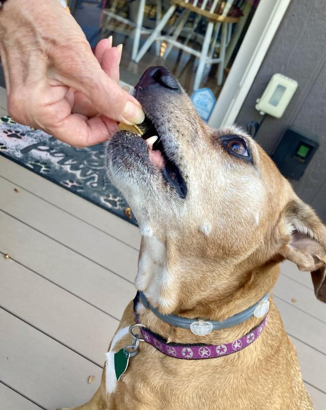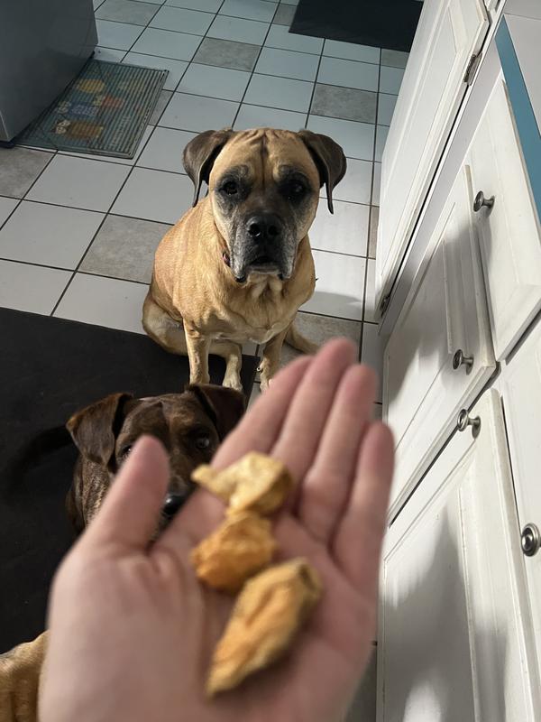 Love Love Love!! The pups love this treat. They love the smell the crunch. I love that it is healthy and feels fine when i feed it no slimy just dry. It is better than what i feed myself!
