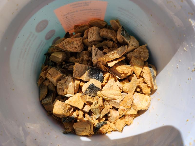 This product is very simply just freeze-dried salmon bite-size pieces, but apparently there's some extra love and magic in there to make it very appealing for even