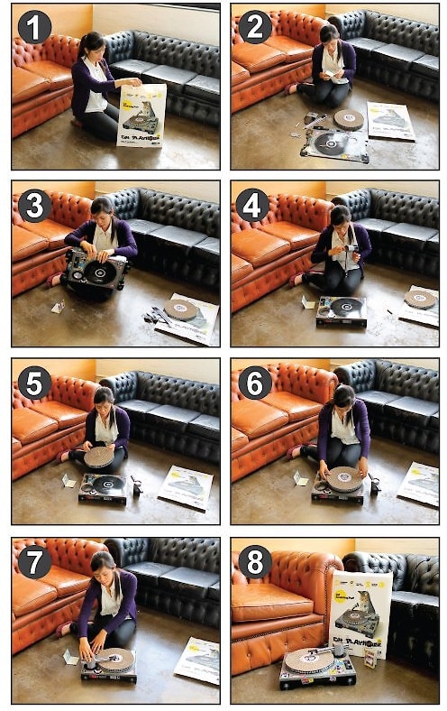 - Made entirely of cardboard and ships flat; folds together easily and includes a poseable tone arm and spinning scratch pad.