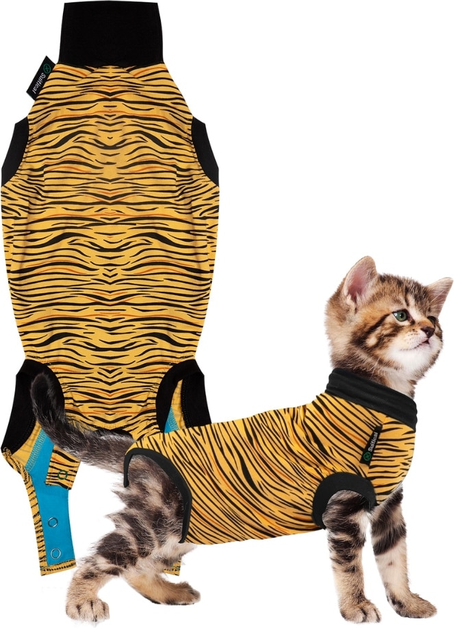 Suitical Recovery Suit Cat Apparel, Tiger Print, XXX-Small