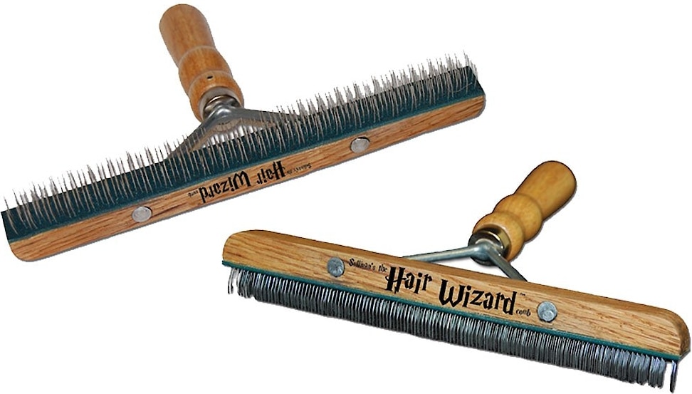 Wire teeth reach under the hair, down to the hide, to pull up every last strand.
