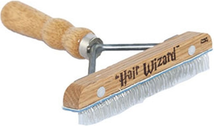 Wire teeth reach under the hair, down to the hide, to pull up every last strand.