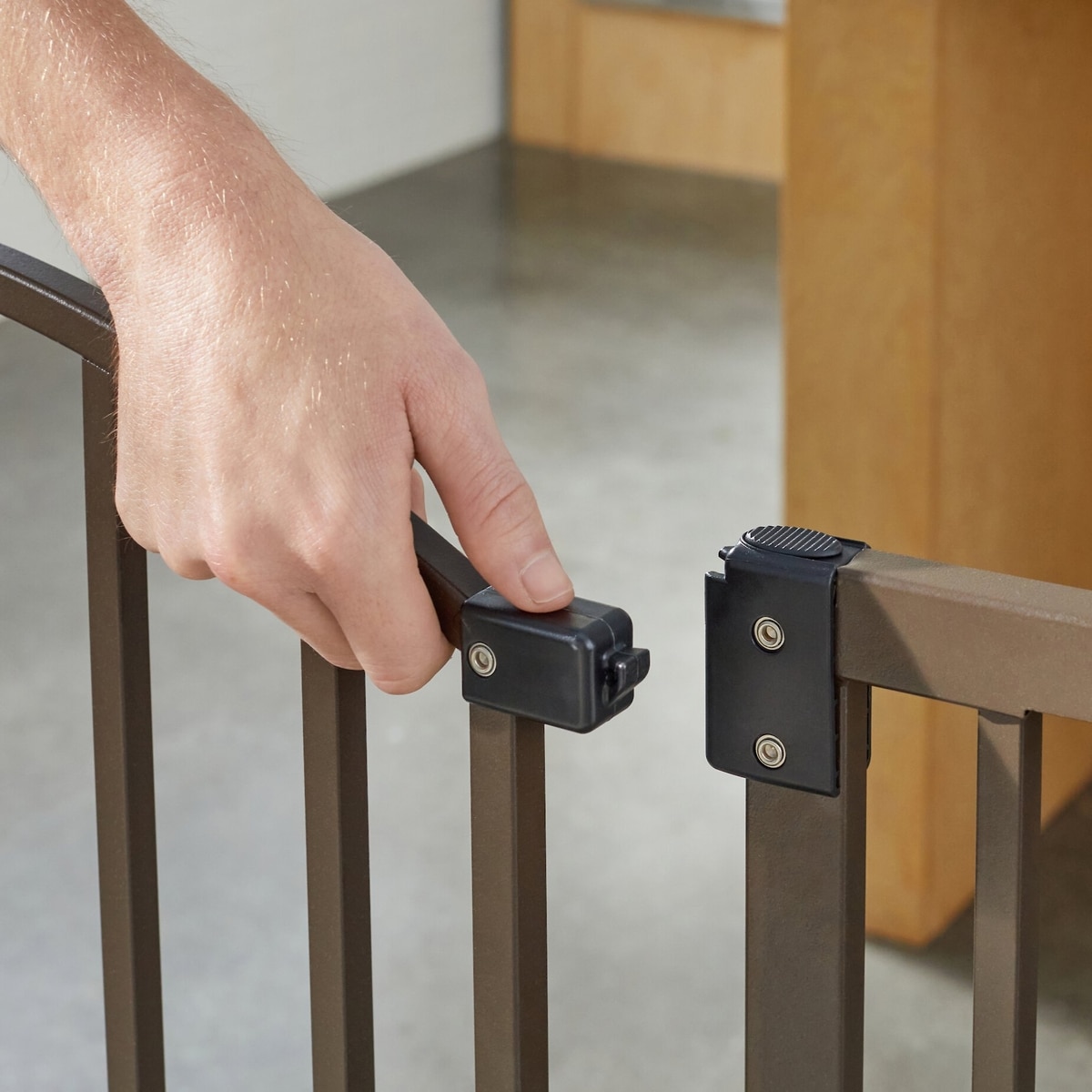 - Stylish gate fits any home décor.